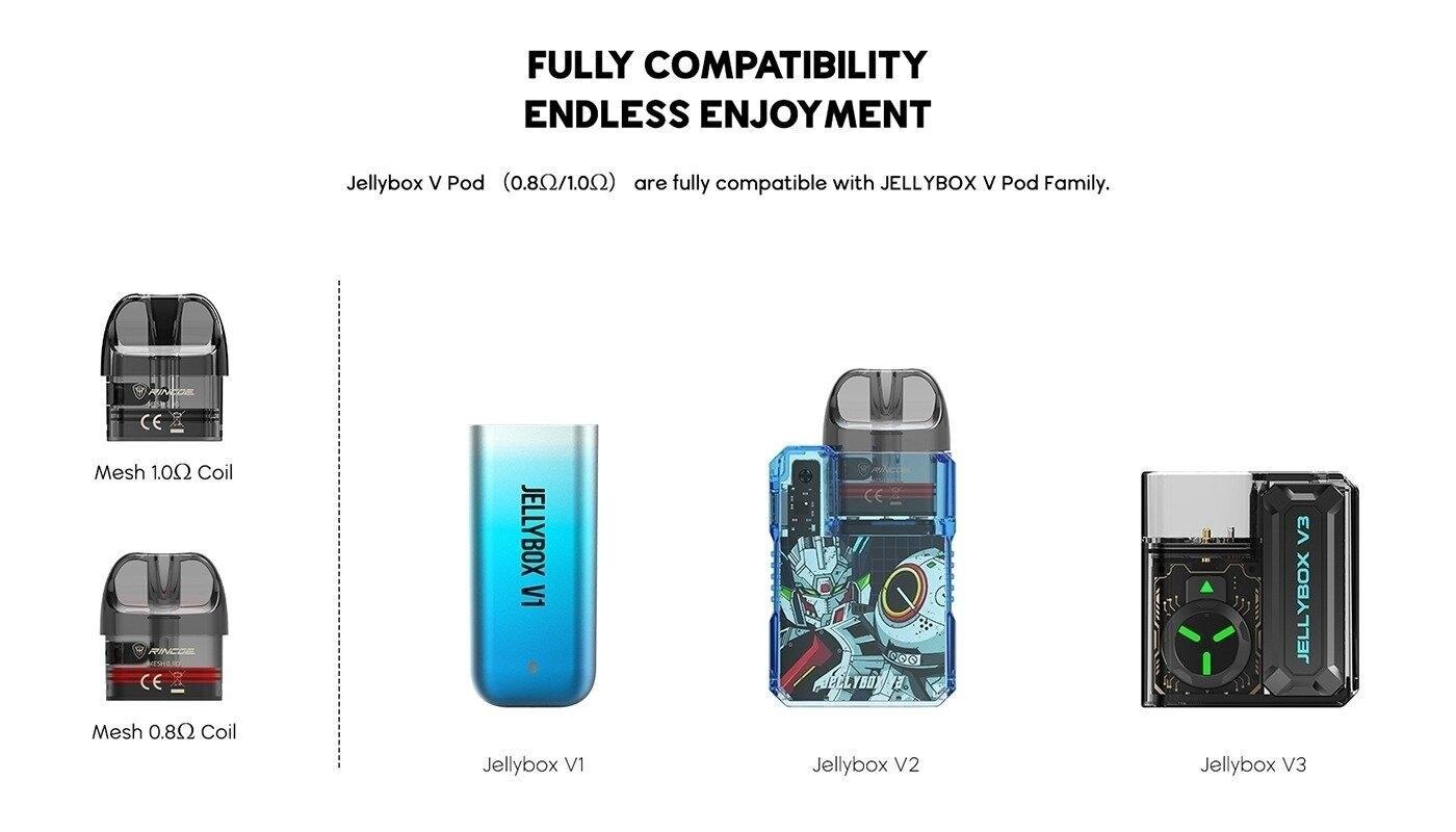 คอยล์ซีรี่ย์ใหม่จากค่าย Rincoe Jellybox V cartridge เป็นหัวพอตใช้กับตัวเครื่อง Series V ได้ทุกรุ่น ตัวคอยล์จะเติมน้ำยาที่ด้านข้างเป็นจุกยางให้ดึงเพื่อน้ำยาได้แบบง่ายๆ คอยล์ Jellybox V เหมาะกับน้ำยาประเภทไหน หัวพอตจะมีค่าโอห์มที่ค่อนข้างสูง และจะมีเบอร์ให้เลือกใช้งานเพียง 2 เบอร์เท่านั้น เป็นเบอร์ 0.8Ω และ 1.0Ω จะเป็นการใช้แบบ MTL ซึ่งจะเหมาะกับน้ำยาประเภทซอลนิค ระบบป้องกันการรั่วซึมของหัวพอตรุ่นนี้ ทางผู้ผลิตได้เคลมมาว่า ได้ผ่านการทดสอบปัญหารั่วซึมหลายพันครั้งเพื่อให้ลูกค้าใช้งานได้อย่างมีประสิทธิภาพ และหมดปัญหาเรื่องน้ำยารั่วซึม ซึ่งเป็นสาเหตุหลักที่จะทำให้ตัวเครื่องเกิดการเสียหาย ส่วนระบบที่ทางผู้ผลิตได้อัพเกรดขึ้นมานั้น จะเป็นการป้องกันน้ำยารั่วซึมแบบหลายชั้น ซึ่งจะเป็นการกันน้ำยารั่วออกมาจากหัวพอตได้เป็นอย่างดี