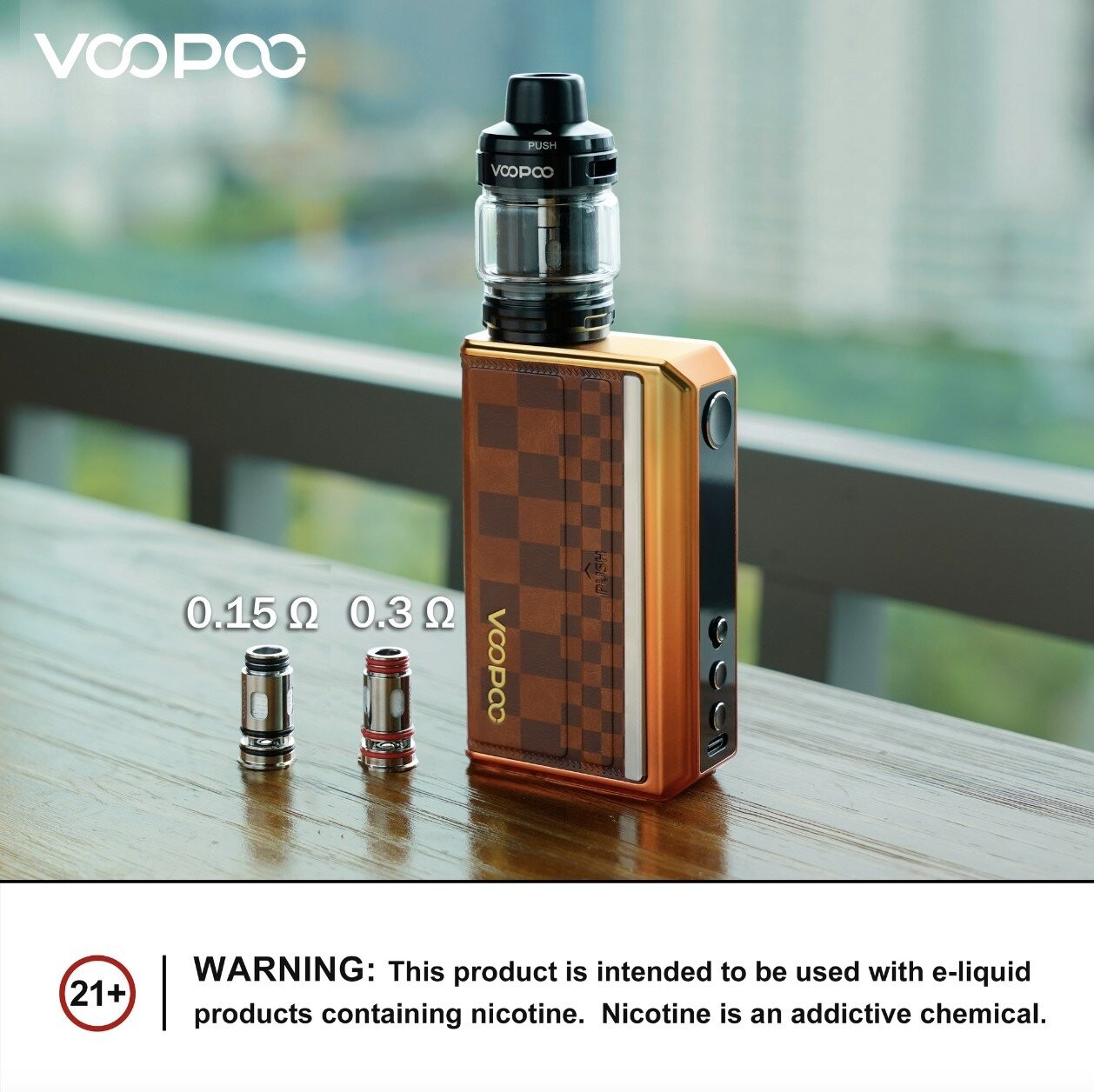 รูปทรงแบบกล่องประกอบด้วยแทงค์น้ำยาด้านบน ขนาดของตัวเครื่อง 55.09 x 27.40 x 89.30mm มีช่องอากาศเข้าด้านบนแบบ 2 รู เพื่อให้การไหลเวียนของอากาศเข้าได้ดี